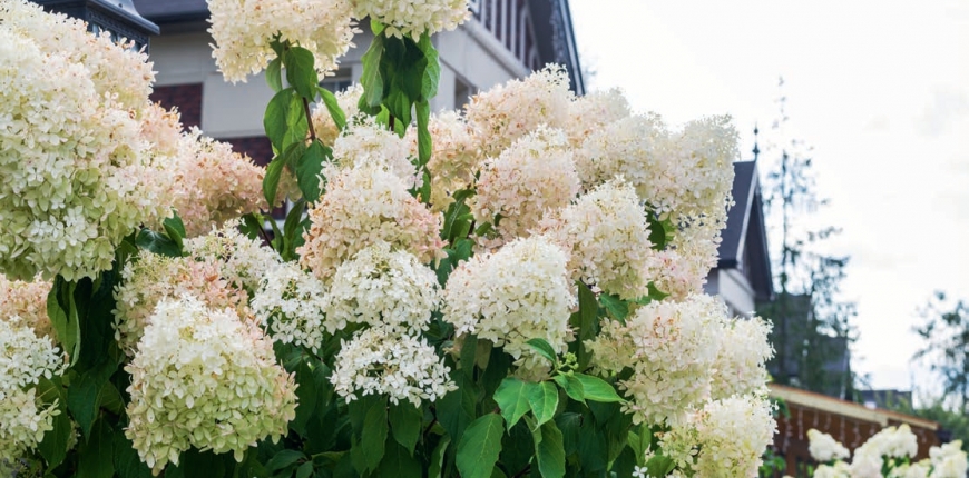 Hortensje bukietowe warto sadzić wszędzie tam, gdzie oczekujemy spektakularnego widoku. Krzewy te doskonale nadają się do nasadzeń kaskadowych, kiedy to w pierwszej połowie sezonu tworzą zielone tło dla innych roślin ozdobnych – kwitnących bylin i traw – a w drugiej połowie lata wybuchają burzą groniastych kwiatostanów, przyciągających uwagę. Hortensje bukietowe potrafią zostać z nami przez całą zimę. Jeśli krzewy posadzone są w zacisznym, osłoniętym od wiatru miejscu, kwiaty dekoracyjnie zaschną na łodygach, a przyprószone śniegiem nadal zapewnią odrobinę ozdoby w smutnym już ogrodzie. Hortensje bukietowe występują w szerokiej gamie odmian, które różnią się od siebie wielkością, kształtem oraz kolorem kwiatostanów. Znajdziemy te niezwykle pełne, groniaste z kwiatami o zbitej soczystej objętości, jak i te mocno stożkowate, przerzedzone, różniące się wielkością drobnych składowych w ramach jednego kwiatostanu kwiatków. Gatunki hortensji bukietowych to również cała gama odcieni bieli, seledynu, różu i mocnej purpury, czasem układających się gradientem w jednym kwiecie. Hortensje bukietowe w czasie kwitnienia wspaniale się przebarwiają, świeże wczesne kwiaty barwy białej wraz z upływem czasu potrafią zmienić kolor nawet na ciemnoróżowy. To zapewnia w ogrodzie zmienną i bardzo efektowną dekorację. Hortensje można sadzić niezależnie jako krzewy samodzielne, stanowiące główny walor estetyczny w ogrodzie. Doskonale jednak nadają się jako elementy rabat, szczególnie o wspomnianej piętrowej kompozycji. Wyglądają niezwykle dekoracyjne stanowiąc również sąsiedztwo ogrodzenia, kiedy spektakularnie przewieszają się bukietem kwiatostanów przez płot. Trzeba bowiem pamiętać, że hortensje nawet regularnie (zgodnie z zasadami pielęgnacji) przycinane dość szybko się rozrastają. W zależności od odmiany potrafią zbudować wysoki pokrój, nawet do 3 m. Dlatego jeśli zależy nam na dekoracyjnych kwiatach, ale nie ekspansywnym rozroście, wybierzmy odmiany karłowate i niskie.